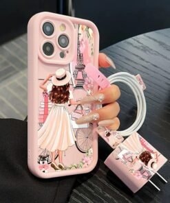 Apportez une touche de charme parisien à votre iPhone 13 avec ce magnifique ensemble rose ! Ce pack comprend : 1 coque iPhone 13 anti-choc au design élégant (fille parisienne, Tour Eiffel, vélo, fleurs) 1 protection de chargeur assortie 1 câble avec attaches et protections décorées ✨ Design chic et féminin, parfait pour celles qui aiment la mode, Paris et le rose ! 💪 Protection complète contre les rayures et les chutes. 🎁 Idéal comme cadeau original pour femme ou ado. 📦 État : Neuf – expédition rapide.